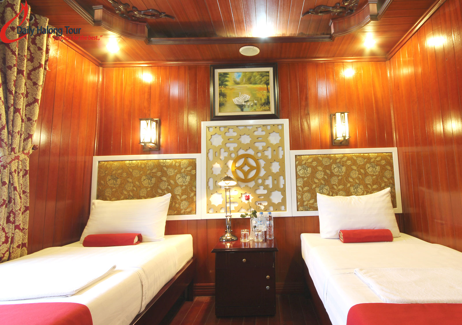 MAJESTIC HALONG CRUISE là du thuyền 3 sao đầu tiên đưa vào khai thác trên Vịnh Hạ Long với hành trình độc đáo và khác biệt. Với các điểm đến: làng Vạ Giá hoặc, làng nuôi cấy ngọc trai sẽ là một hành trình đáng nhớ của khách du lịch tham quan Vịnh Hạ Long. Majestic Hạ Long Cruise kết hợp nét duyên dáng và thoải mái tuyệt vời để đáp ứng nhu cầu ngày càng tăng của du khách với chất lượng dịch vụ du lịch trên biển sang trọng. Majestic Cruise được xây dựng vào năm 2013, tầu thương hiệu mới bằng gỗ trải dài với một đội ngũ nhân viên chuyên nghiệp trung thành và tận tâm, sự sang trọng mới nhất tại Hạ Long. Trải rộng trên 3 sàn, tầu có 12 cabin sang trọng có nội thất đầy đủ với tường gỗ sồi, tất cả các phòng ngủ và phòng tắm có hướng nhìn ra biển và ban công.