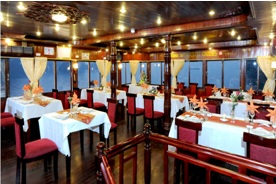 12:30 Dùng bữa ăn trưa với món Việt Nam trong khi du thuyền trên Vịnh Hạ Long tuyệt đẹp, chiêm ngưỡng những thành đá hấp dẫn trong vịnh.
