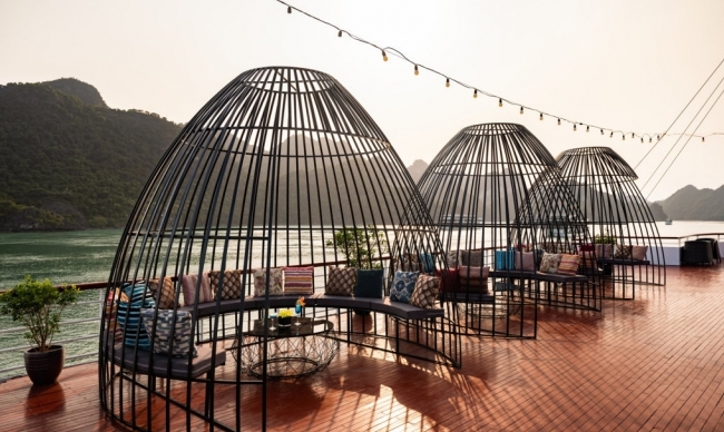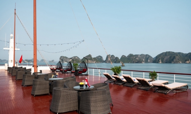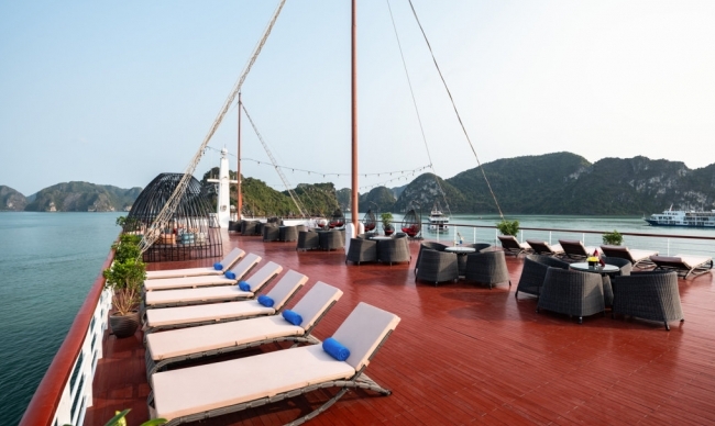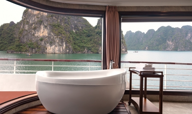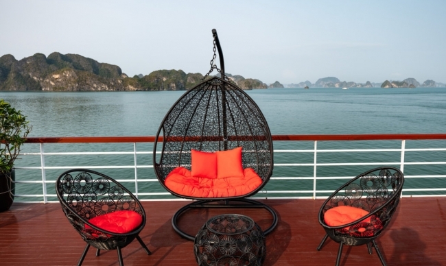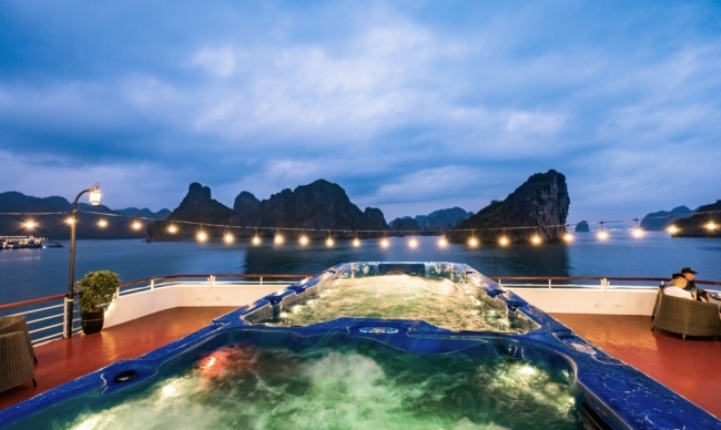 After a long fun day of exploring the splendid natural beauty of Halong Bay, what is more relaxing than freely rejuvenating both your body and mind in a jacuzzi/mini pool. Join us on this cruise and admire the Bay from a different perspective.