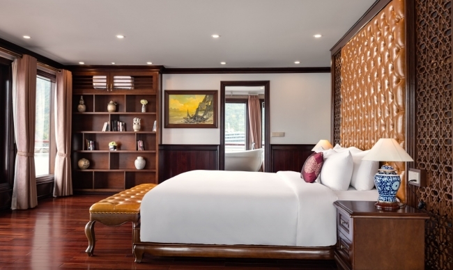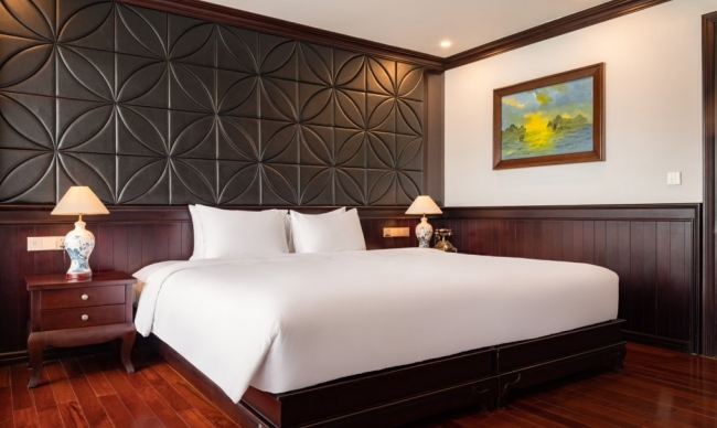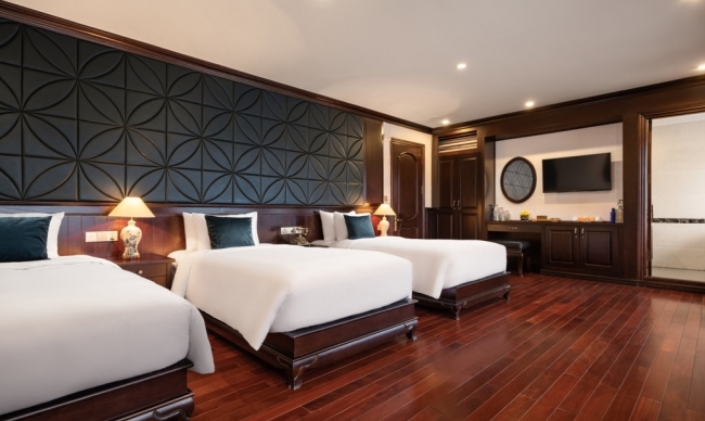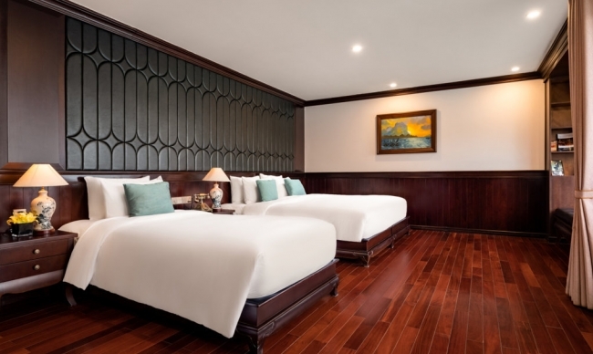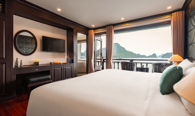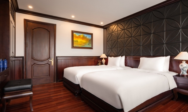 Activities: Tai Chi session on the sundeck, have breakfast, discover Dark and Bright by bamboo boat, enjoy a buffet lunch, speedboat to Tuan Chau, transfer back Hanoi by car