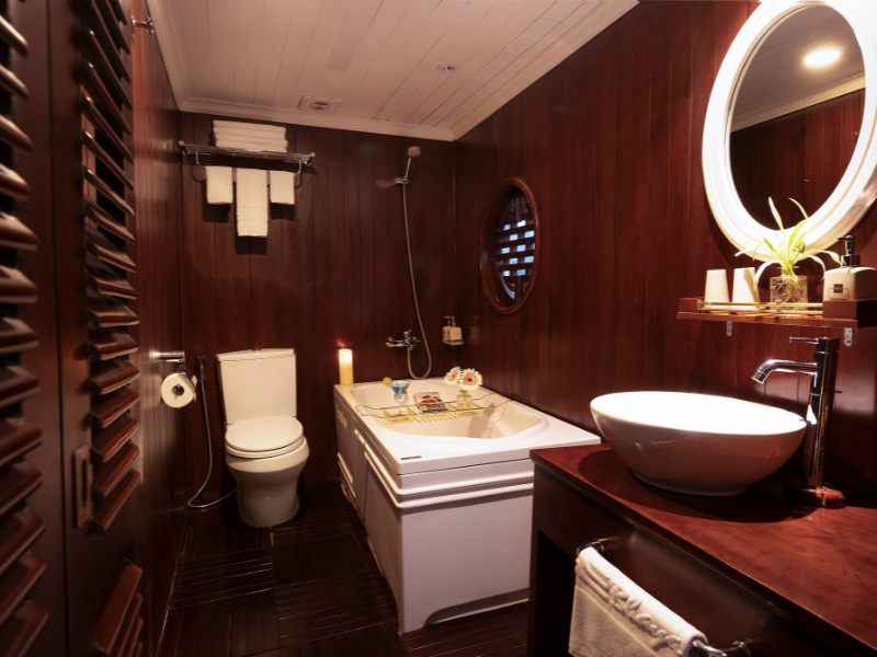 Join the exciting cooking demonstration making the signature Vietnamese spring rolls. Don’t forget to check out the magical Halong sunset scene serving as background.