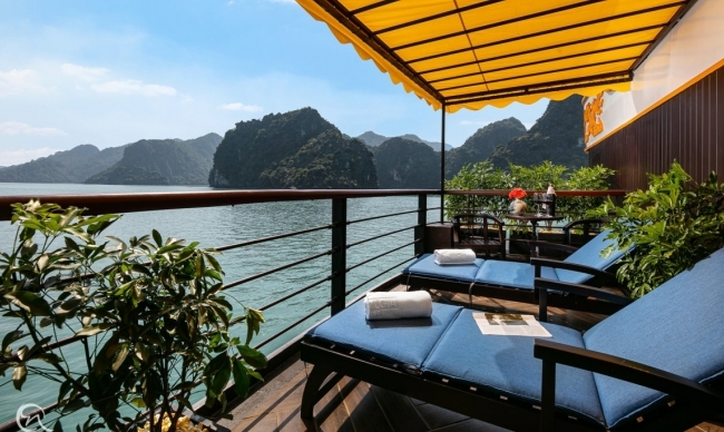 After a long fun day of exploring the splendid natural beauty of Halong Bay, what is more relaxing than freely rejuvenating both your body and mind in a jacuzzi/mini pool. Join us on this cruise and admire the Bay from a different perspective.