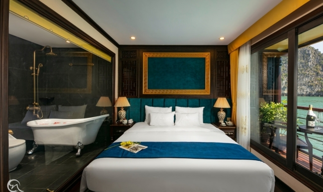 Scheduled to set sail in December 2022, Nostalgia Cruise promises an exceptional voyage to amazing yet less touristy corners of Halong Bay and Lan Ha Bay. With only 11 elegant cabins, this unique boutique cruise ship pays much attention to details of both interior and exterior, as well as always guarantee top-notch service. You will see traditional decor arts and well-designed wooden furniture that remind much of the royal Vietnamese architecture. If you are seeking serenity, peace and purity in the beauty of Halong Bay - Lan Ha Bay, Nostalgia Cruise is surely the perfect option.
