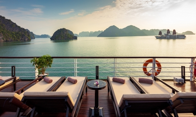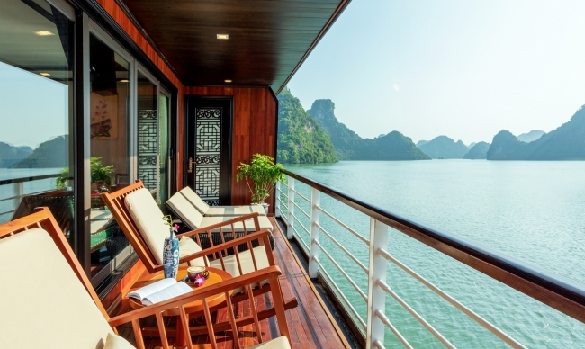 After a long fun day of exploring the splendid natural beauty of Halong Bay, what is more relaxing than freely rejuvenating both your body and mind in a jacuzzi/mini pool. Join us on this cruise and admire the Bay from a different perspective.