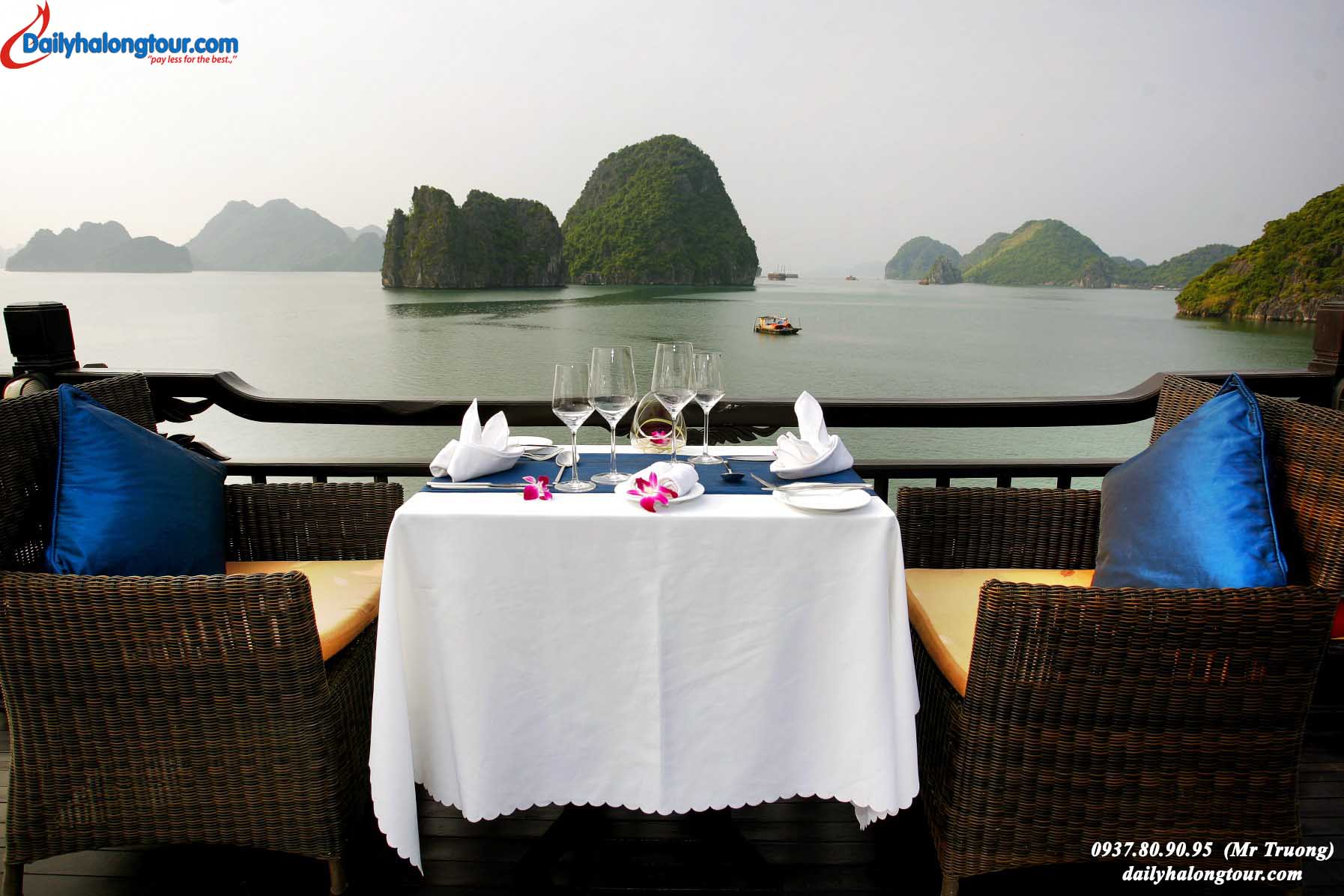 Time to enjoy your lunch at Elegance Restaurant while Paradise Legacy passes by beautiful islets of Halong Bay.