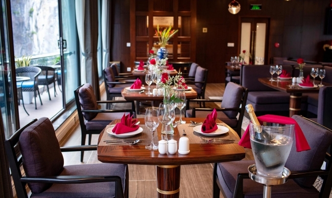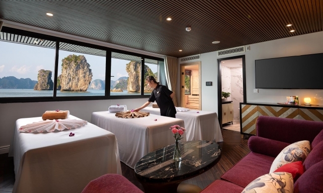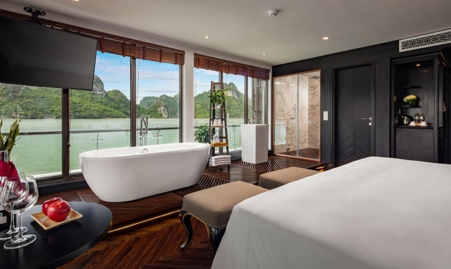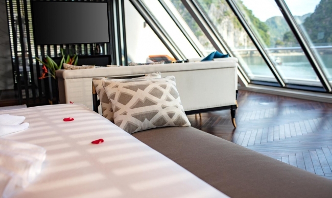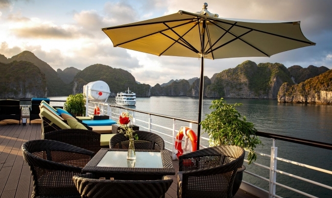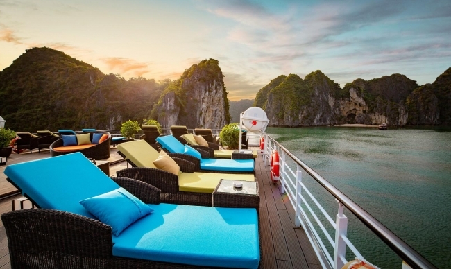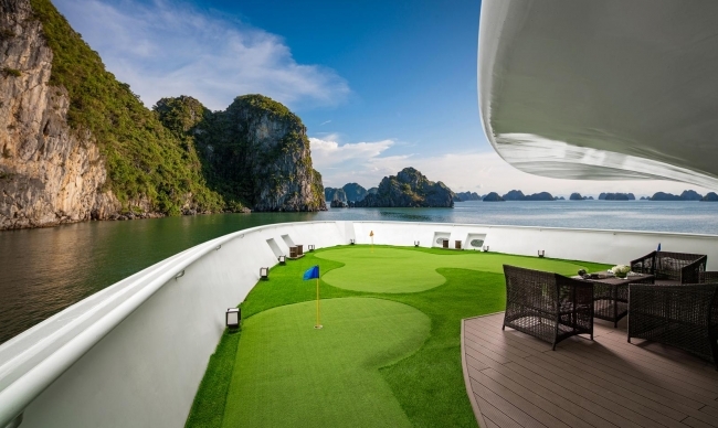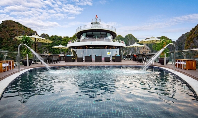 Organizing new itinerary in Halong – Lan Ha Bay that focuses on leisure and relaxing activities, Stellar of the Seas Cruise accommodates 22 spacious cabins with stylish design and well-furnished amenities. As one of the minority of luxurious metal cruises possessing an outdoor pool and a mini-golf course on board, Stellar of the Seas not only welcomes tourists to experience the new definition of contemporary luxury with a dedicated crew but also creates a leisurely vacation exploring the untouched beauty of Halong - Lan Ha Bay.