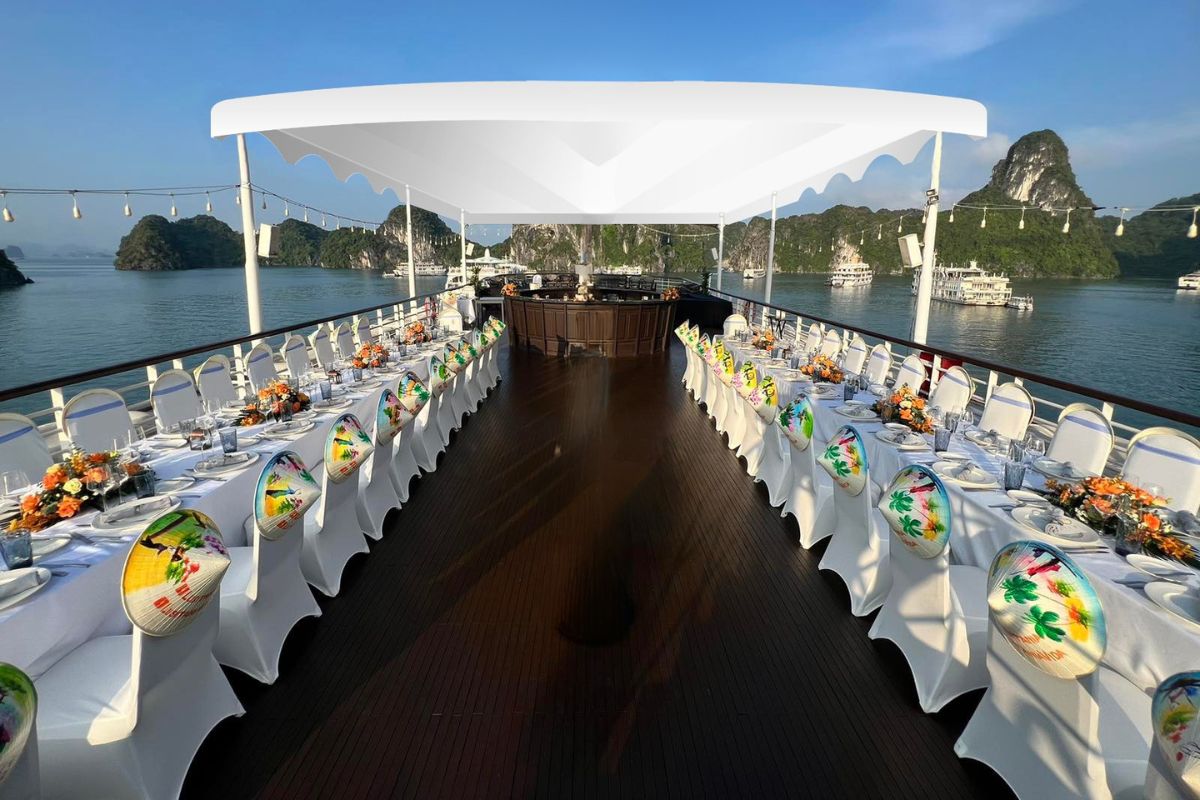 Enjoy afternoon tea onboard Paradise Explorer whilst admiring spectacular scenic views of Ha Long Bay.