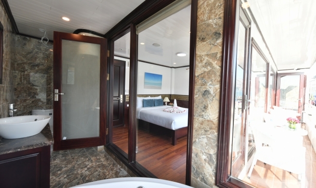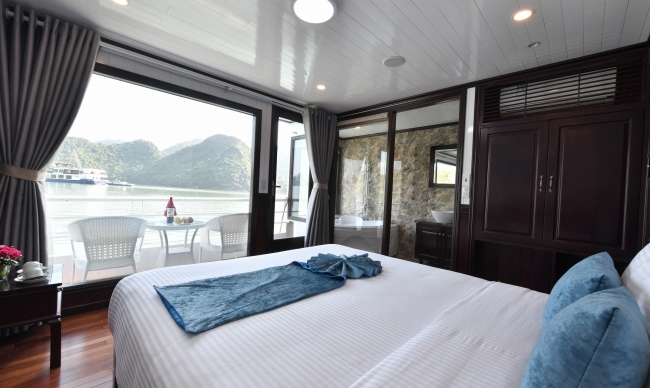 - Accommodation in a luxurious air-conditioned en-suite cabin, including a private bathtub. Private balcony with sea view