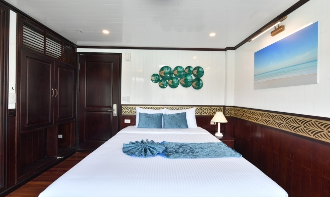 Activities: Tai Chi Class in the morning, light breakfast, visit Dark & Bright Cave, back to the main boat, check-out Sapphire Cruise, join cooking class, serving brunch on board, disembark in Got Ferry, transfer back to Hanoi