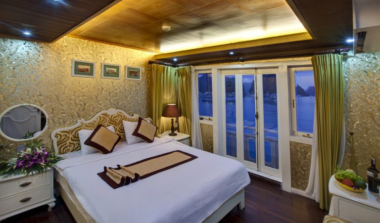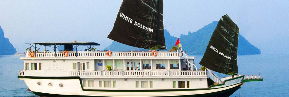 In the morning – 8h00 Am, tour guide and shuttle bus will pick you up at your hotel and depart to Halong Bay. Arrive in Hon Gai harbour, tourists get on White Dophin Cruise, check in cabin and enjoy welcome drink while listening to detail itinerary of the tour and safety instruction.