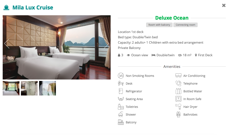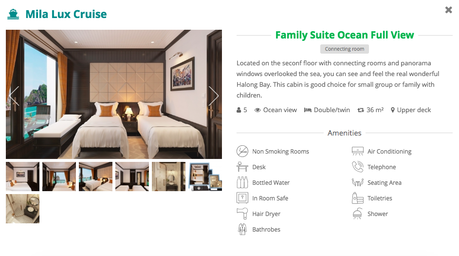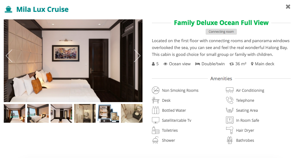 - Free of charge for one child below the age of 5 years sharing bed with 02 adults. Limited one child per cabin only.