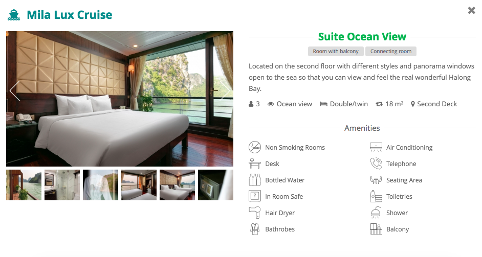 • 11:30 Disembark Mila Cruises at Tuan Chau Marina, it’s time to say best wishes and end your cruise with us.