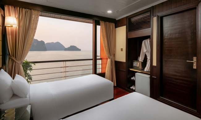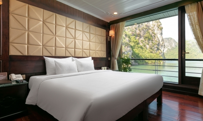 Activities: Start a new day with Taichi Class, speed boat to Lan Ha Bay to discover Dark and Bright Cave and Ba Trai Dao Beaches, Visit Me Cung Cave, Attend cooking class, Relax on sundeck or participating in nightlife activites