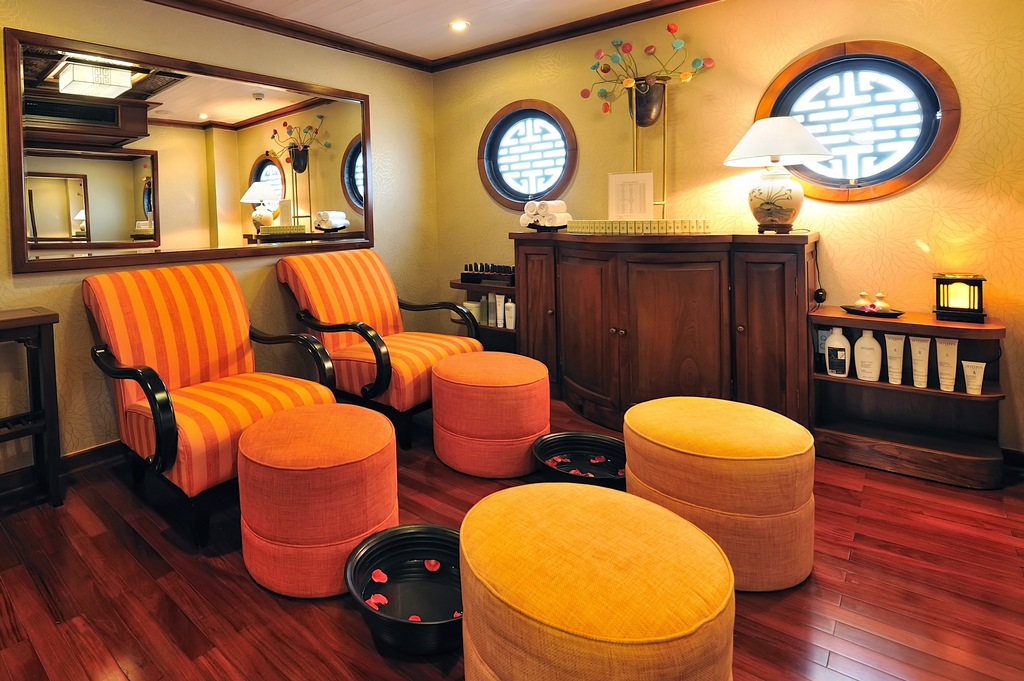 After dinner, indulge in drinks*, join the squid fishing at the back of the cruise, enjoy fantastic movies in your cabin, and enjoy natural relaxing treatments at Le Parfum Spa*.