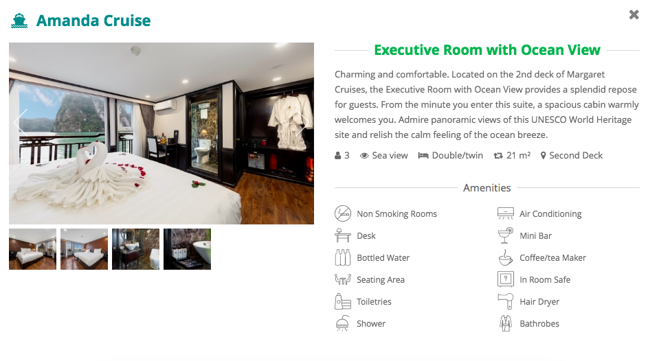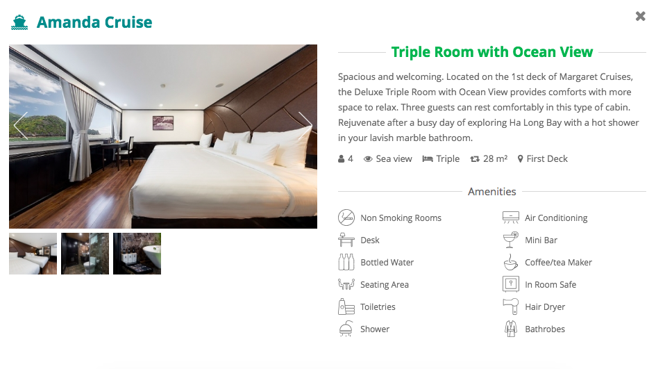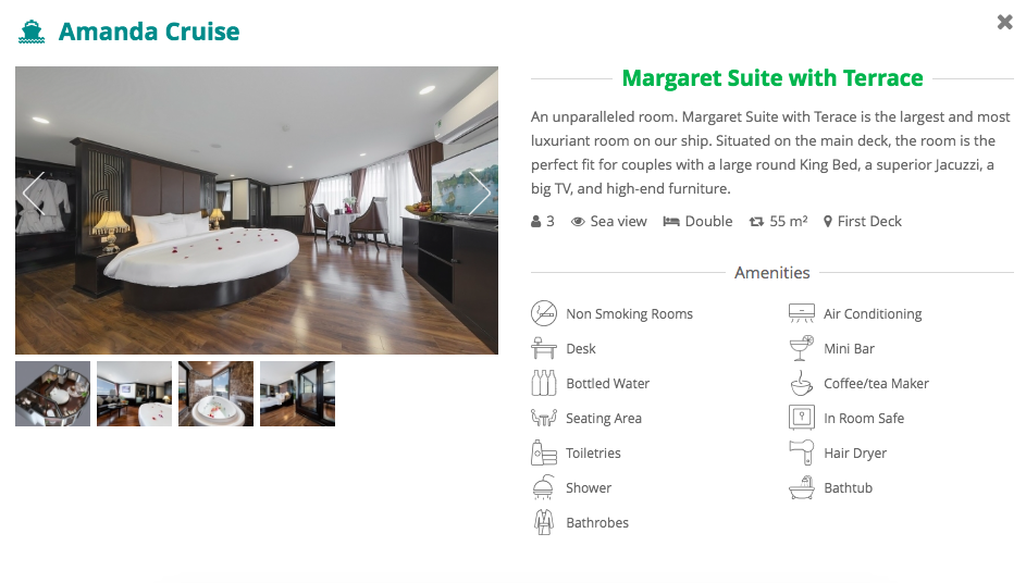 - The Margaret Cruises’ itinerary may change occasionally due to the weather conditions or the instructions given by the Halong Bay Management Authorities.