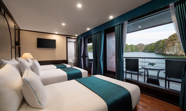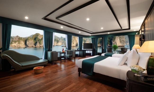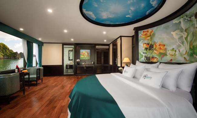20:45: After finishing dinner, you can enjoy the landscape of the bay at night up on the top deck, relax with romantic ballad music, enjoy drinks from the bar try your luck at squid fishing, watch a movie, enjoy Spa treatment, relax in your room.