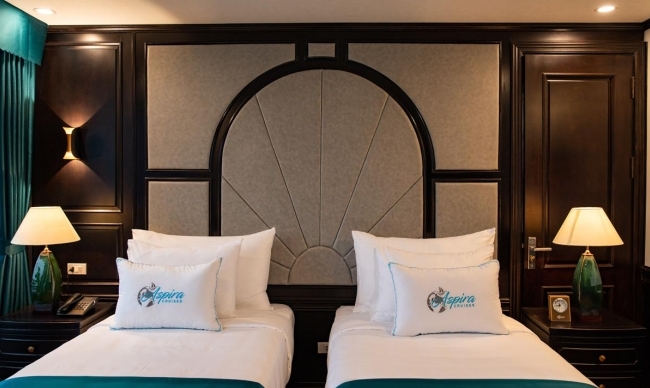 Activities: Hotel pick up, transfer to Tuan Chau Marina, check-in Aspira Cruise, savor lunch, visit Dark and Bright Cave, serving dinner, relax and overnight onboard