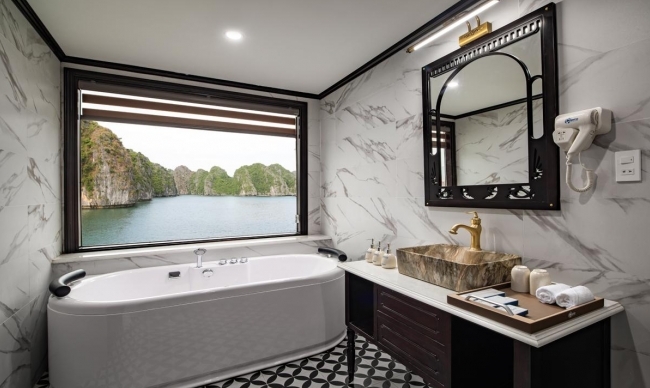 After a long fun day of exploring the splendid natural beauty of Halong Bay, what is more relaxing than freely rejuvenating both your body and mind in a jacuzzi/mini pool. Join us on this cruise and admire the Bay from a different perspective.