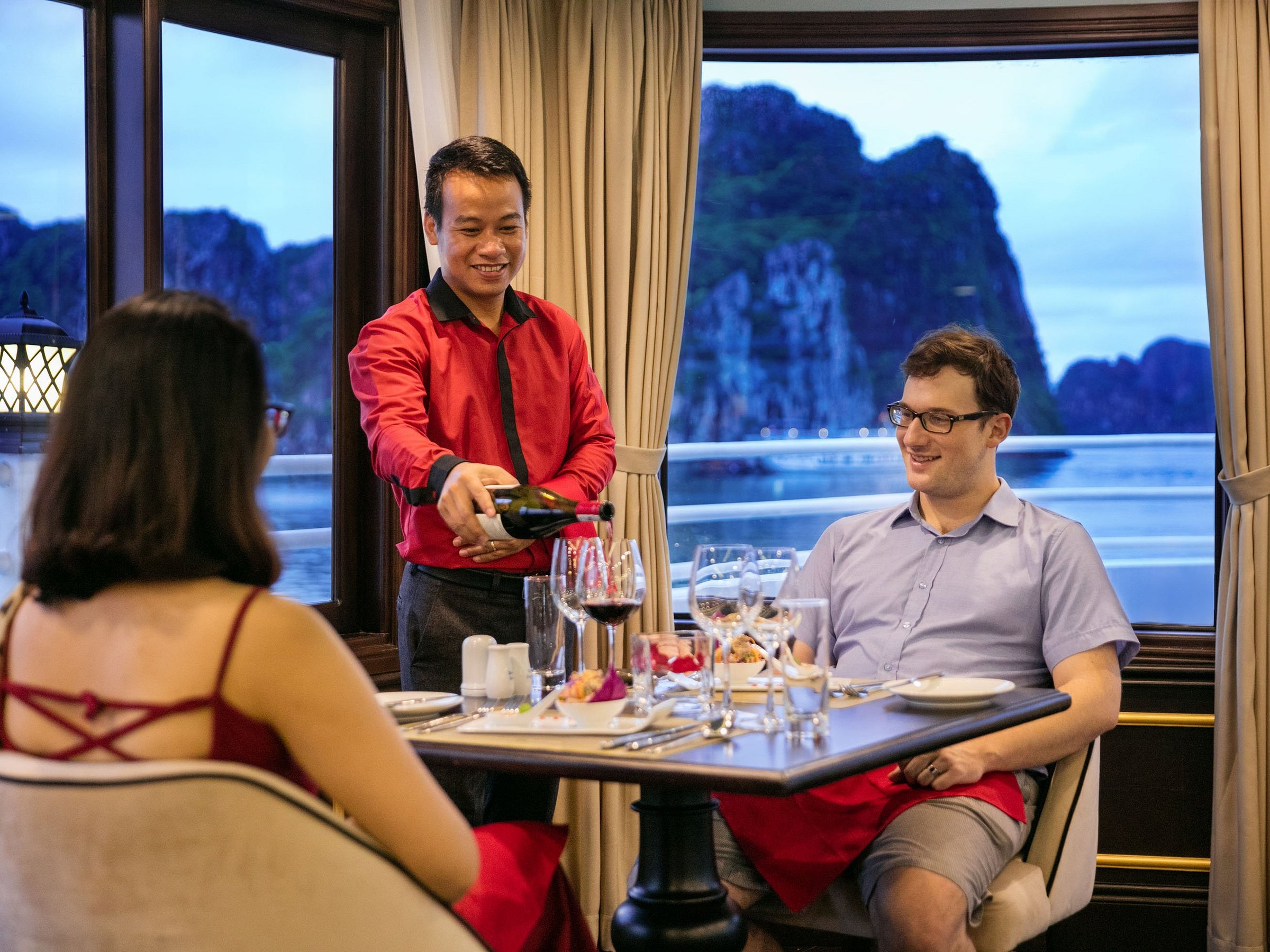 Day 1: Departure from Halong International Port, welcome drinks, cruise through scenic landscapes, visit to Sung Sot Cave and kayak at Luon Cave, cooking class and sunset cocktails happy hour party on Sundeck.