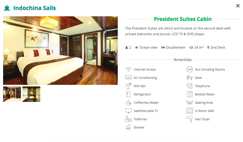 - Luxurious Cabins and Suites with A/C and en-suite Bathrooms