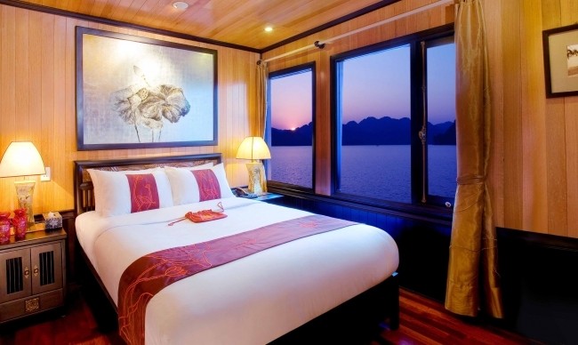 Activities: Take Tai Chi lessons, visiting Luon cave, Explore Cua Van Floating Village by kayaking or bamboo boats (sampans), visitting Pearl Farm, Happy Hour