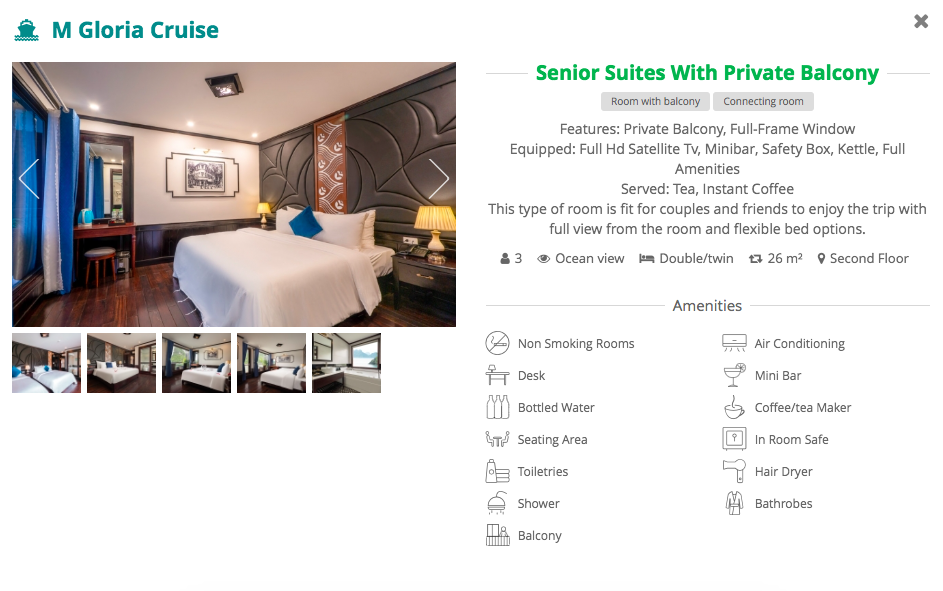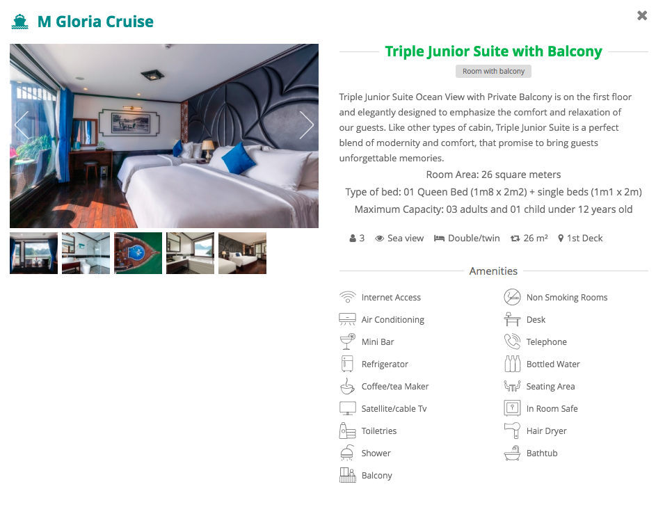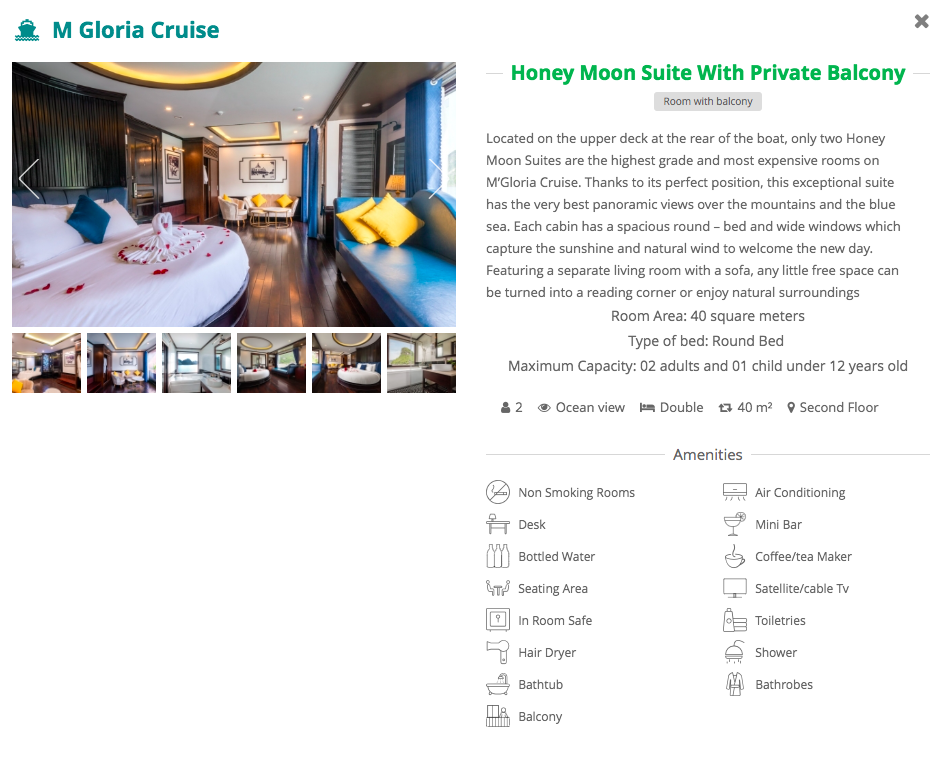 12.00 – 12.30: Leaving M’gloria Cruise to get on the transfer boat back Tuan Chau Harbor dock 35. (If you book your own transfer, please inform driver be ready at dock 35 Tuan Chau 12.30pm). *The itinerary can be changed because of weather's condition or authority's policy. Arrival back at your hotel approximately 15:00