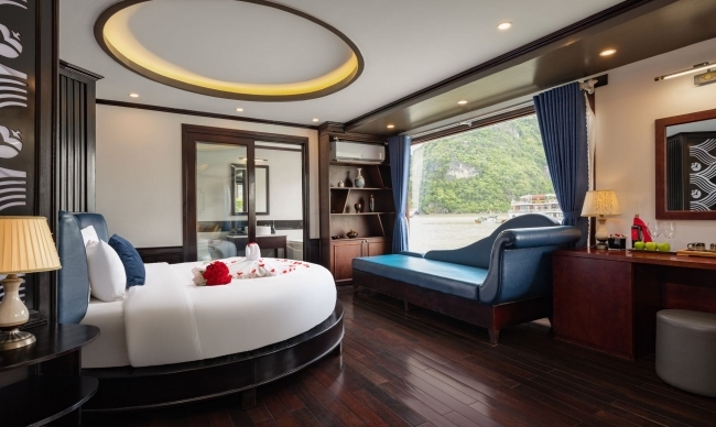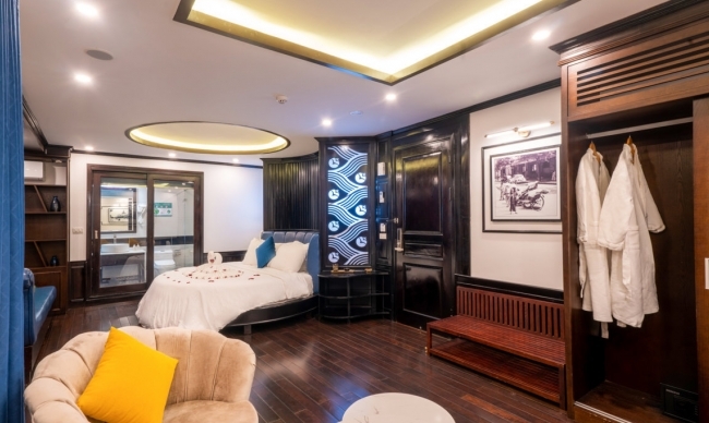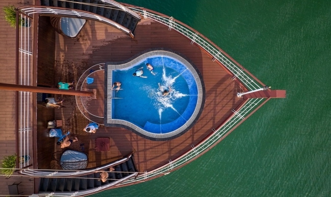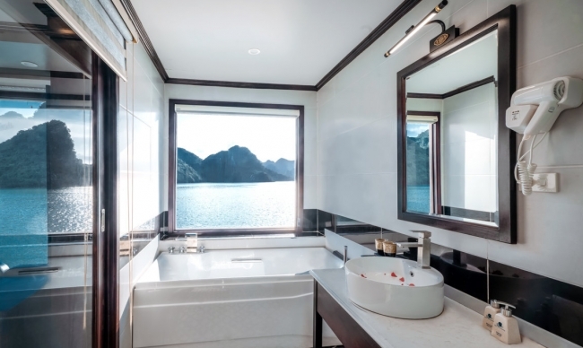After a long fun day of exploring the splendid natural beauty of Halong Bay, what is more relaxing than freely rejuvenating both your body and mind in a jacuzzi/mini pool. Join us on this cruise and admire the Bay from a different perspective.