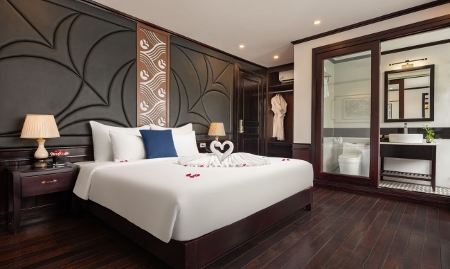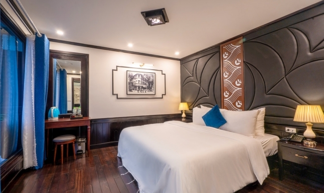 Activities: Start with a Tai Chi lesson on sundeck, enjoy a light beakfast, discover Dark & Bright Cave by kayak or bamboo boat, check out at the reception, enjoy brunch while cruising back to the harbor, disembark at the harbor, drive back to Hanoi