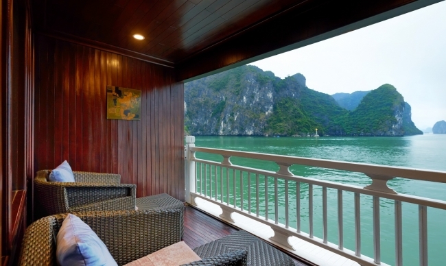 your cabin or on the sundeck, watching Halong Bay drift past.