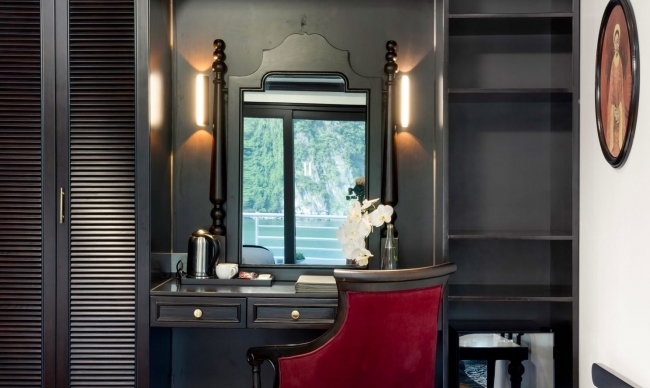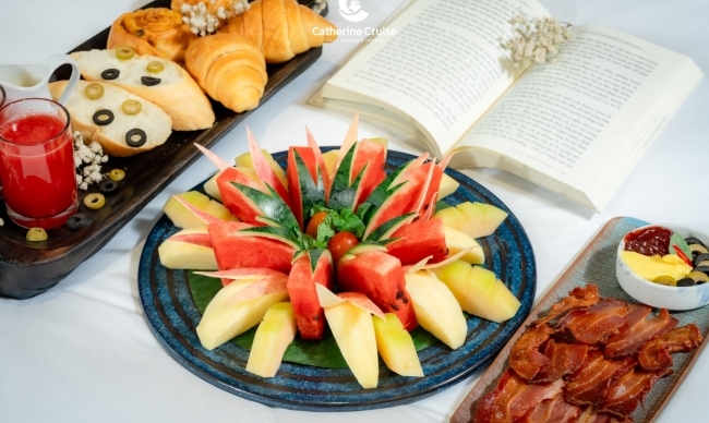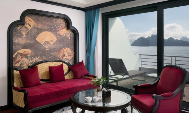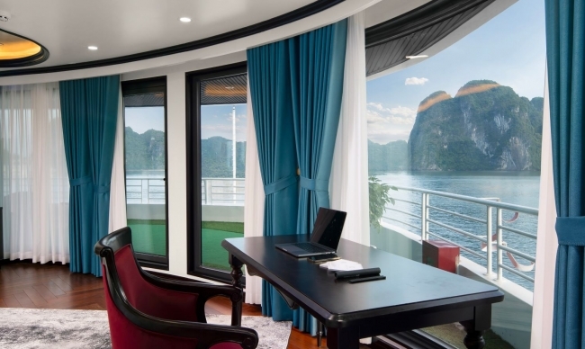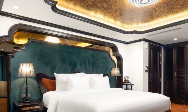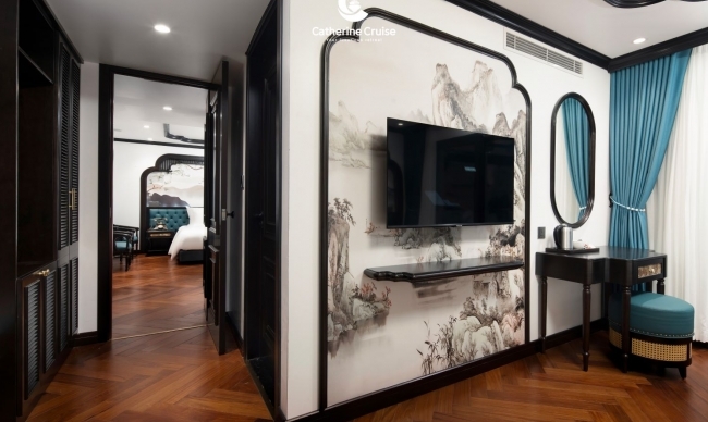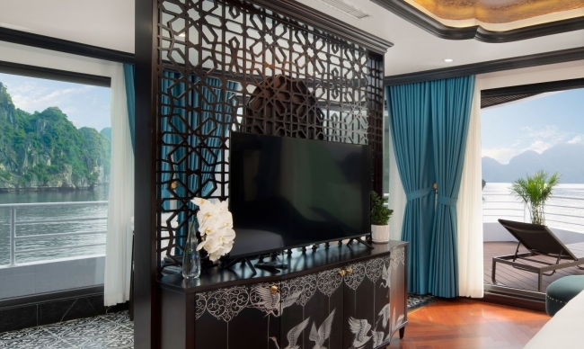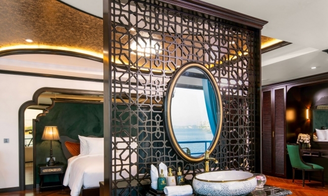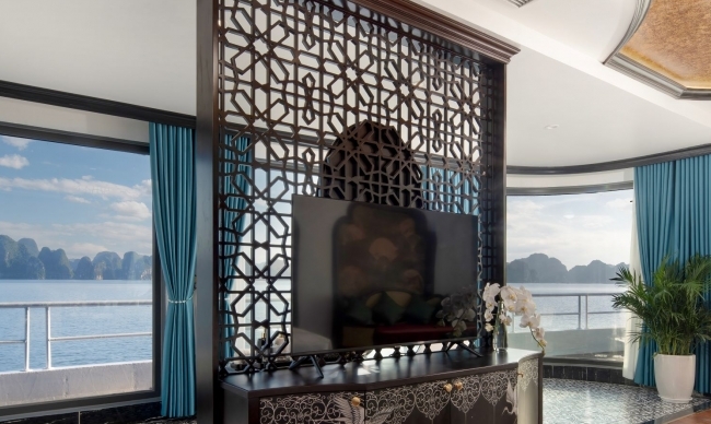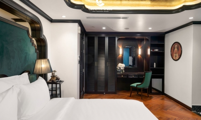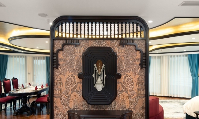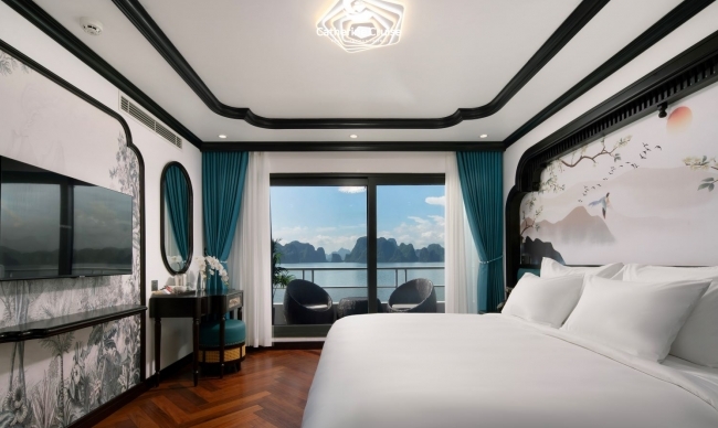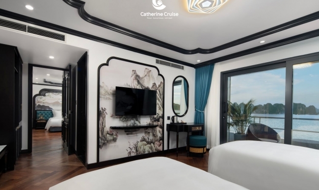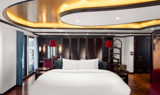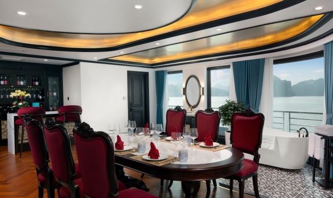 Scheduled to launch in June 2023, Catherine Cruise is a luxurious miniature resort floating in the turquoise water of Halong Bay. The cruise has a 6-star super-yacht appearance, combined of Indochine style illustrating through curving figures on the ceilings and abstract images, like the graceful beauty of Southeast Asian ladies. Besides the ability to accommodate up to 117 guests with 39 lavish cabins, Catherine will take your heart with a superb range of entertainment recreations onboard, namely Infinity Pool, Wine & Cigars Cellar, Karaoke rooms, Texas Hold’em Poker, Mini Golf Course… With a goal to preserve the natural beauty of Halong Bay, Catherine Cruise will surely bring guests an ext