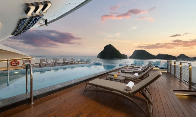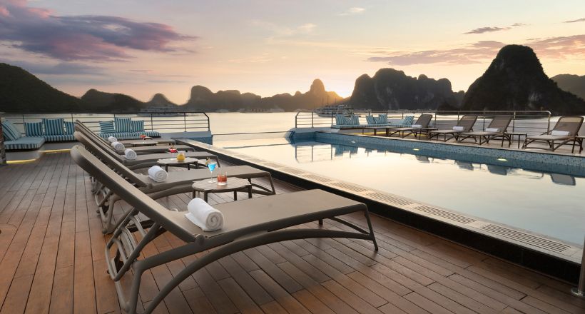 After a long fun day of exploring the splendid natural beauty of Halong Bay, what is more relaxing than freely rejuvenating both your body and mind in a jacuzzi/mini pool. Join us on this cruise and admire the Bay from a different perspective.