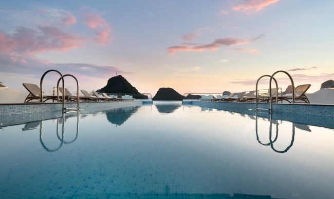 Enjoy the best moments of the day as the sun hits the water between the dramatic limestone peaks and emerald-green coves, choose and savor Canapé and your favorite drink offerings at the Sky bar.