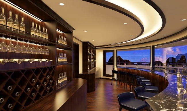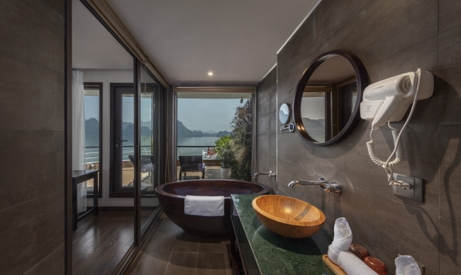 A splendid lunch is served at Tahiti Restaurant while cruising into the primitive Lan Ha Bay. The bay has hundreds of small and large islands, making it an enormous, wonderful scene to look at while dining.