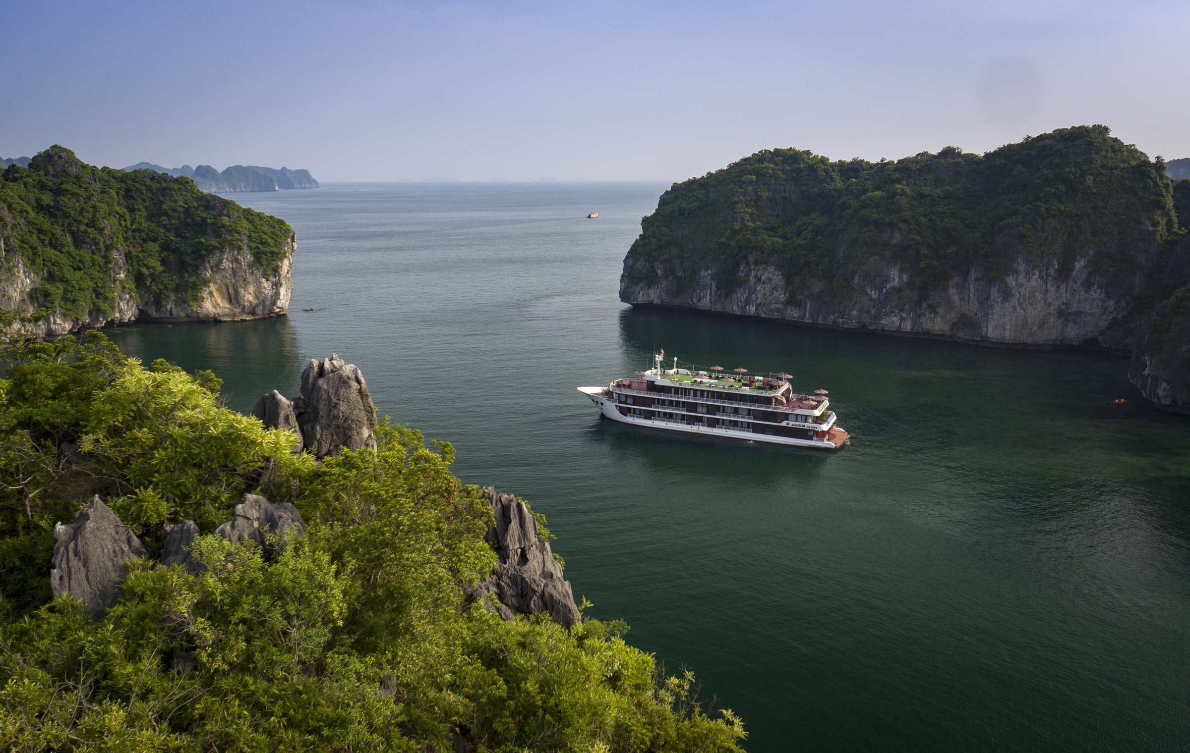 Fighting Cock Islets (Hon Ga Choi): The symbolic twin rock formations standing proudly in the middle of the bay — a hallmark of Halong’s natural charm.
