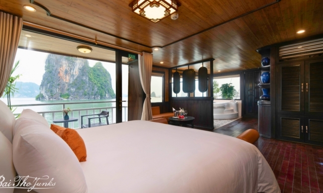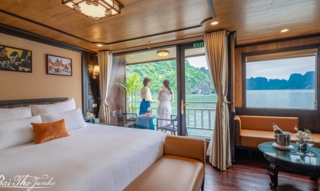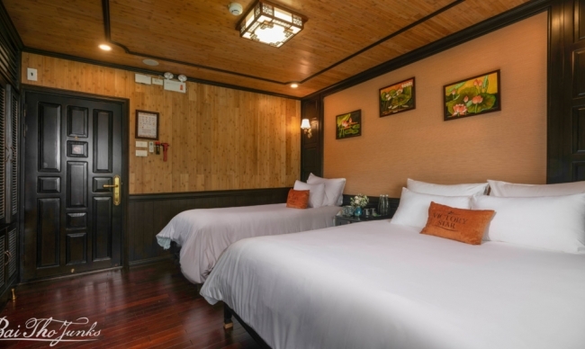 Victory Star Cruise is a real representation of Halong Bay's legendary beauty, with its stunning design drawn from traditional Vietnamese values and the ancient junks of the bay. This amazing cruise offers an unforgettable experience by seamlessly harmonizing the tradition with luxurious amenities. Featuring 32 spacious cabins spread across four decks, Victory Star Cruise boasts a variety of facilities, such as a restaurant, bar, sundeck, and spa. Savor delicious meals at onboard restaurant, unwind with a soothing spa treatment, or just spend time on the sundeck with a good book and cool drinks. Your voyage on Victory Star Cruise will surely come with an unmatched level of luxury and enjoyment.