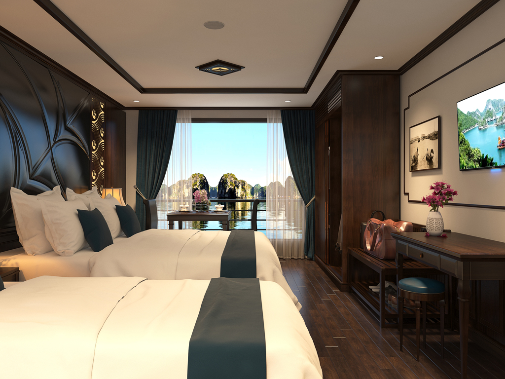 Du Thuyền Arcady Premium Cruises có 22 phòng sang trọng, tất cả các phòng đều có cửa số lớn và ban công hướng biển. Diện tích phòng rộng, nội thất hiện đại đầy đủ tiện nghi là nơi quý khách thoải mái nghỉ ngơi sau những ngày làm việc mệt mỏi.