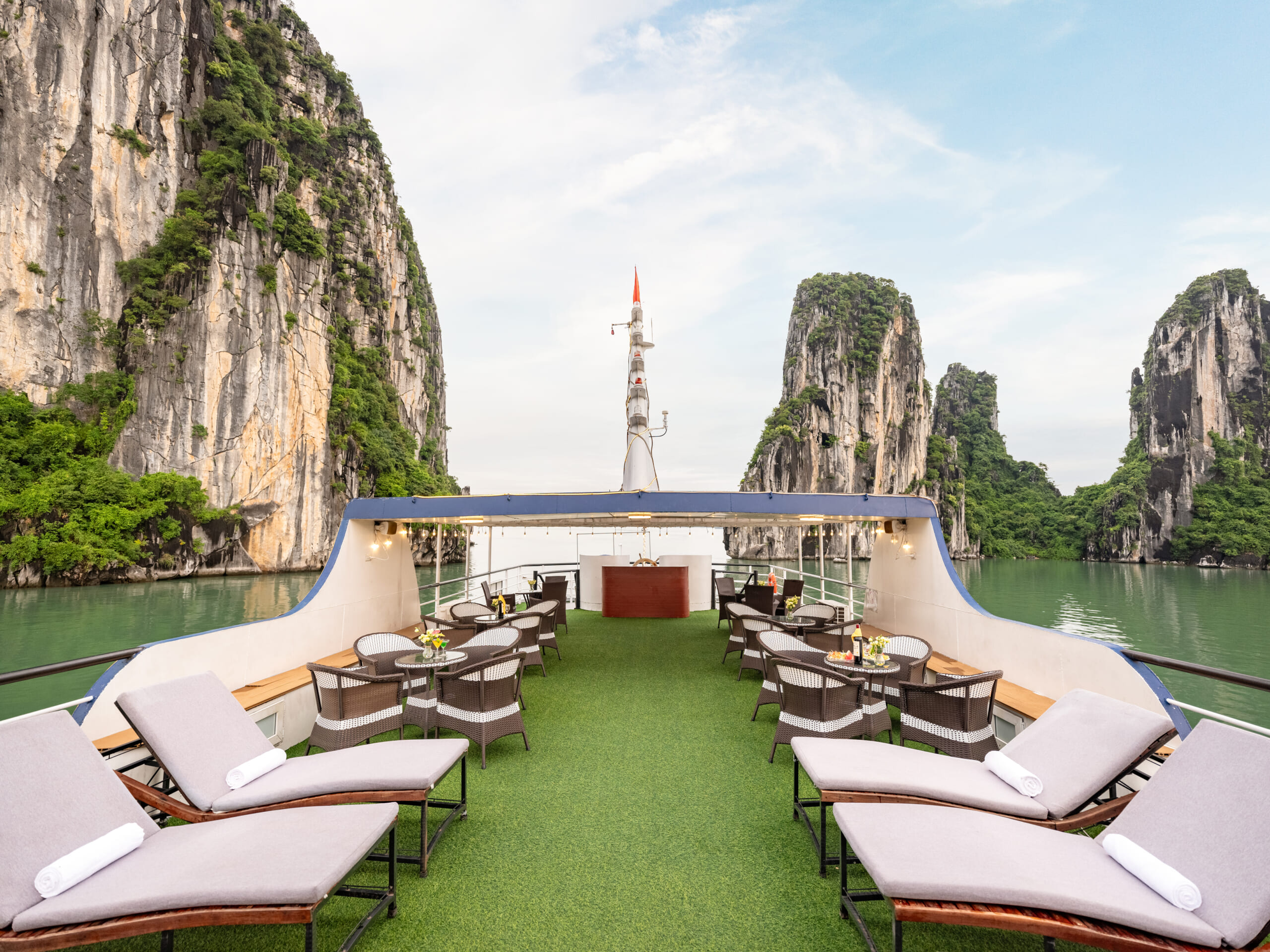 - Wifi chỉ có ở khu vực nhà hàng/ quán bar. Tuy nhiên, chất lượng đường truyền có thể bị hạn chế trong quá trình tàu di chuyển trên vịnh do địa lý của vịnh Hạ Long – Lan Hạ.