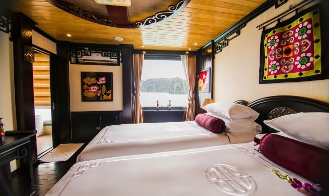 - Cabin sang trọng có phòng tắm riêng, máy lạnh, nước nóng