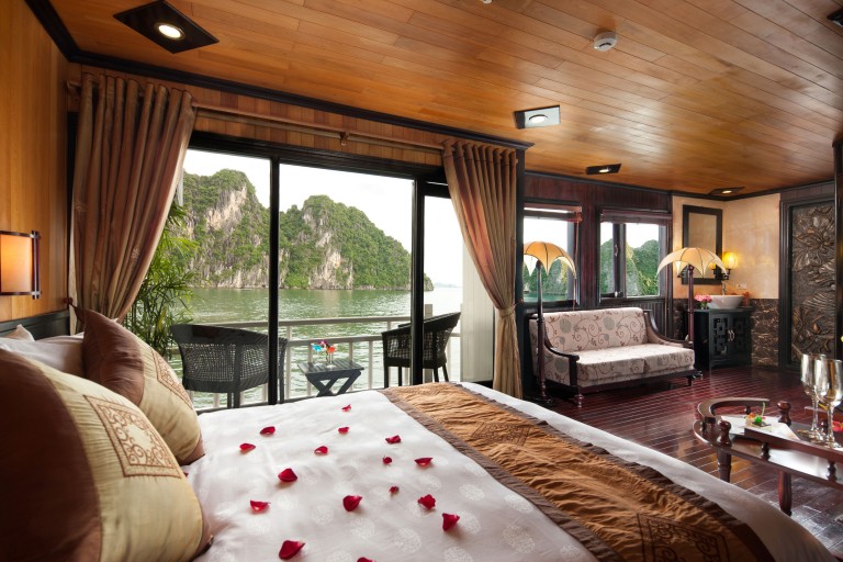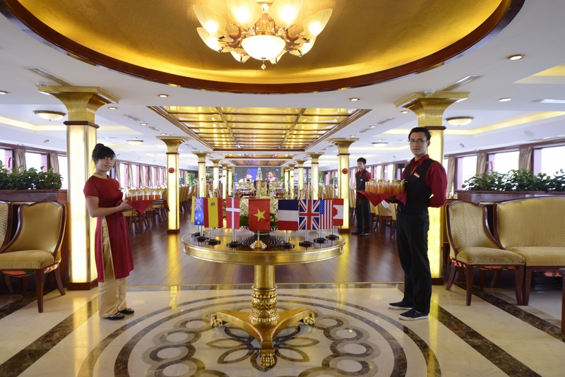 Sau khi nhận phòng cabin sang trọng, quý khách thưởng thức bữa trưa Á cao cấp tại nhà hàng Golden Palace trong khi du thuyền bắt đầu hành trình qua các hòn đảo nổi tiếng như Hòn Đỉnh Hương, Hòn Chó Đá, Hòn Gà Chọi… cùng những làng chài trên biển.
