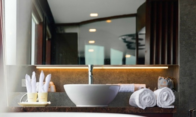 Đồ uống chào mừng, khăn lạnh, hoa và trái cây tươi, 2 chai nước khoáng tại mỗi cabin