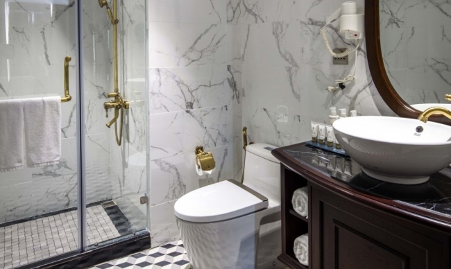 Phòng ngủ sang trọng với điều hòa, phòng tắm riêng