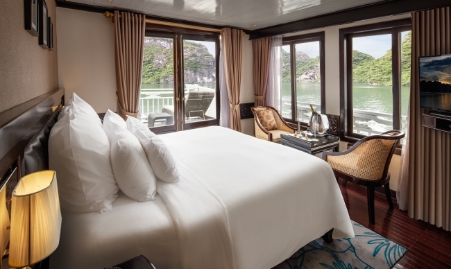 09.00: Quý khách về du thuyền làm thủ tục dọn và trả phòng. Quý khách có thể để hành lý bên ngoài cửa phòng, nhân viên của đội tàu sẽ giúp chuyển về bến.