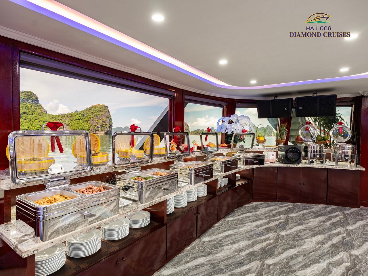 Thưởng thức bữa trưa Buffet thịnh soạn với nhiều món ăn đa dạng bao gồm Hải sản – Món ăn Việt Nam và Món ăn Quốc tế.